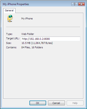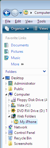 Click through to the end of the wizard, and you'll finally see your new iPhone connection in Web Folders